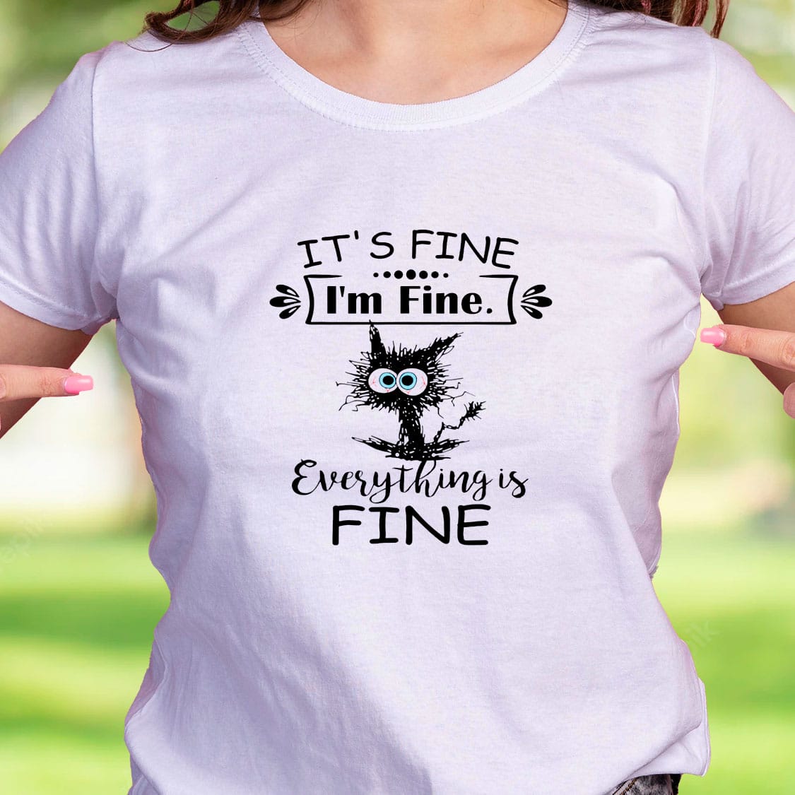 Cat It'S Fine I'M Fine Everything Is Fine Casual T Shirt