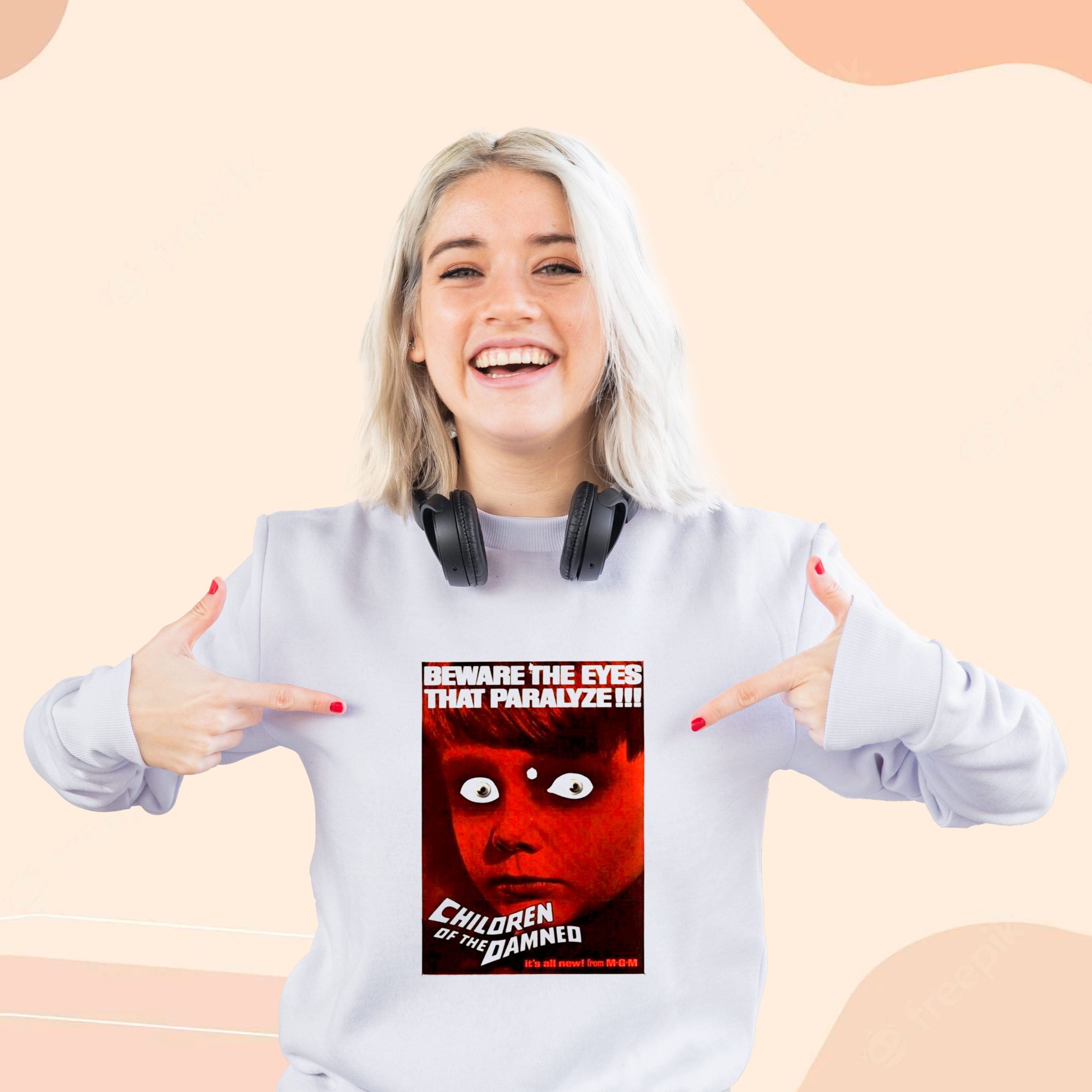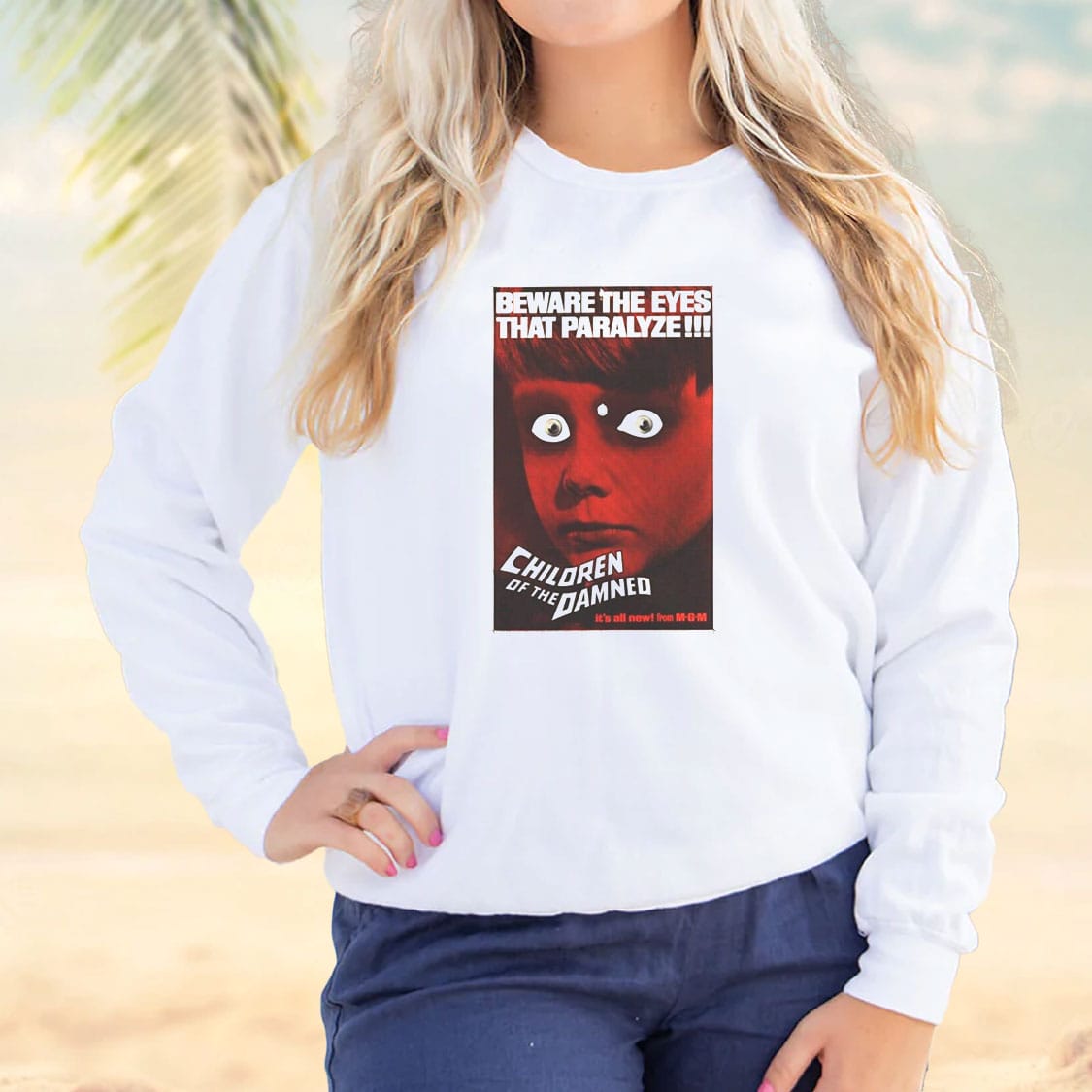 Looking for a touch of style and attitude in your wardrobe? Look no further! Feast your eyes on our latest Children of The Damned Retro Horror Cool Sweatshirt that screams individuality and panache. Crafted with the finest 100% cotton, our tees promise a blend of comfort and cool that lasts all day long.