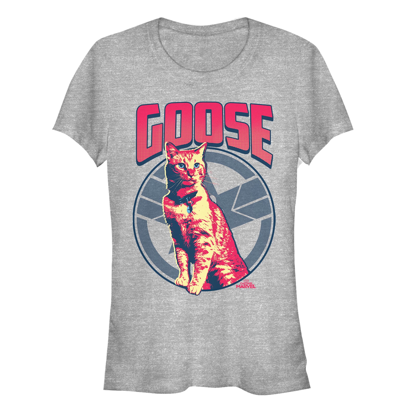 Junior's Marvel Captain Marvel Goose Cat Badge T-Shirt