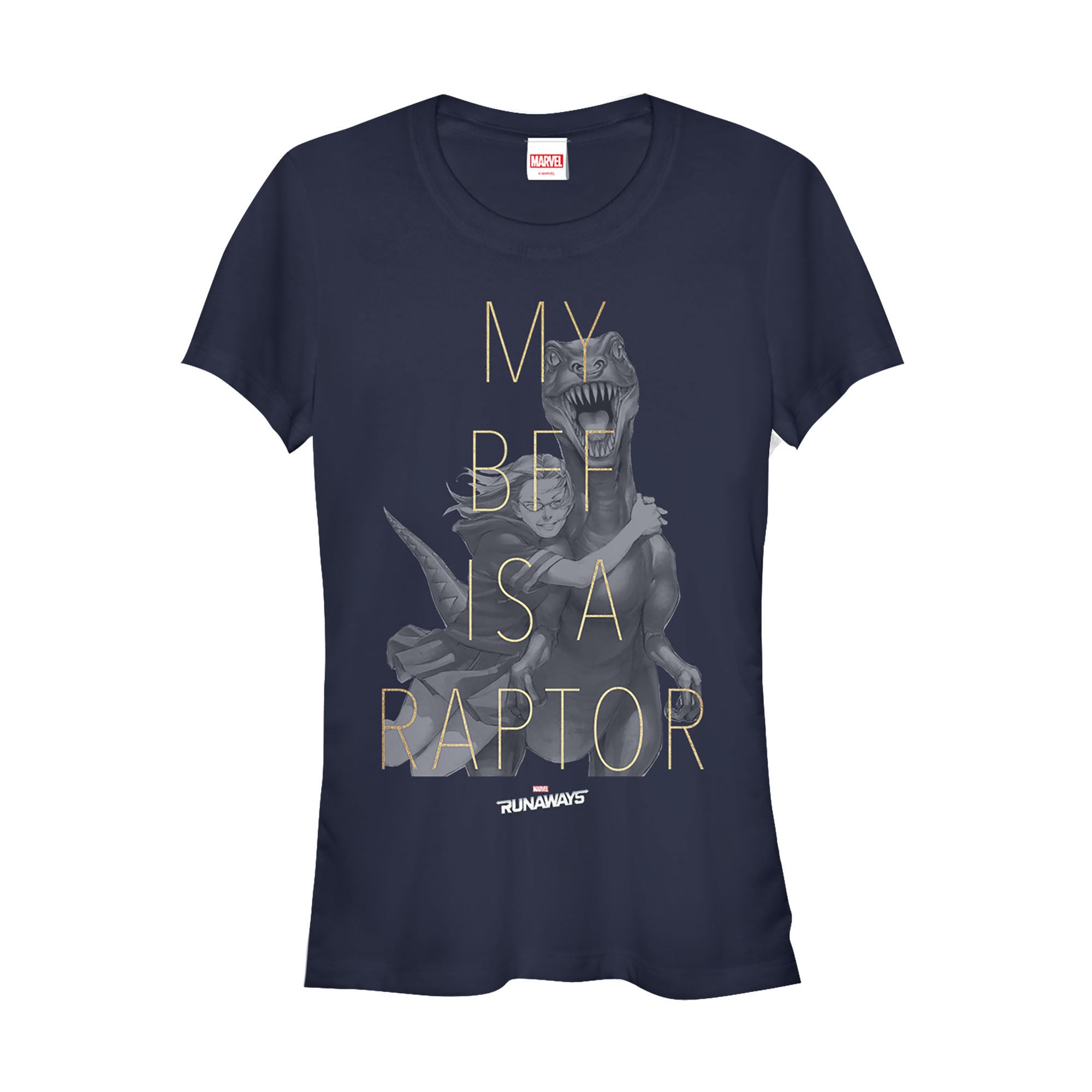 Junior's Marvel Runaways BFF Raptor Old Lace T-Shirt